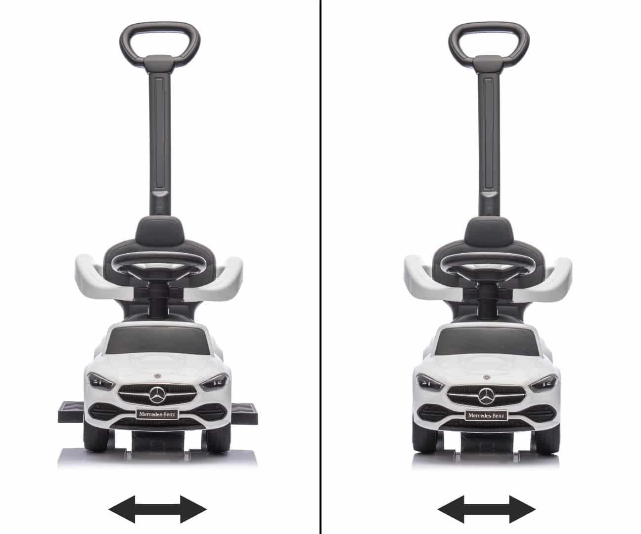 - ✅ Licencja Mercedesa gwarantująca wysoką jakość, Produkt Milly Mally Pojazd z rączką MERCEDES C-Class White: przeznaczony dla dzieci od 12 do 36 miesięcy