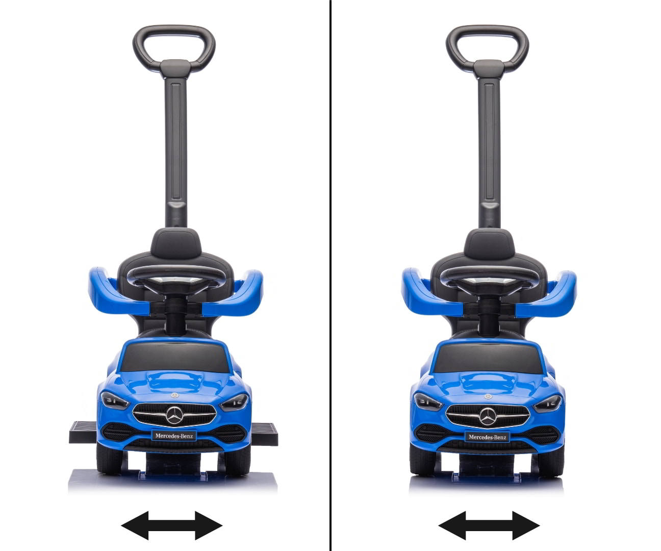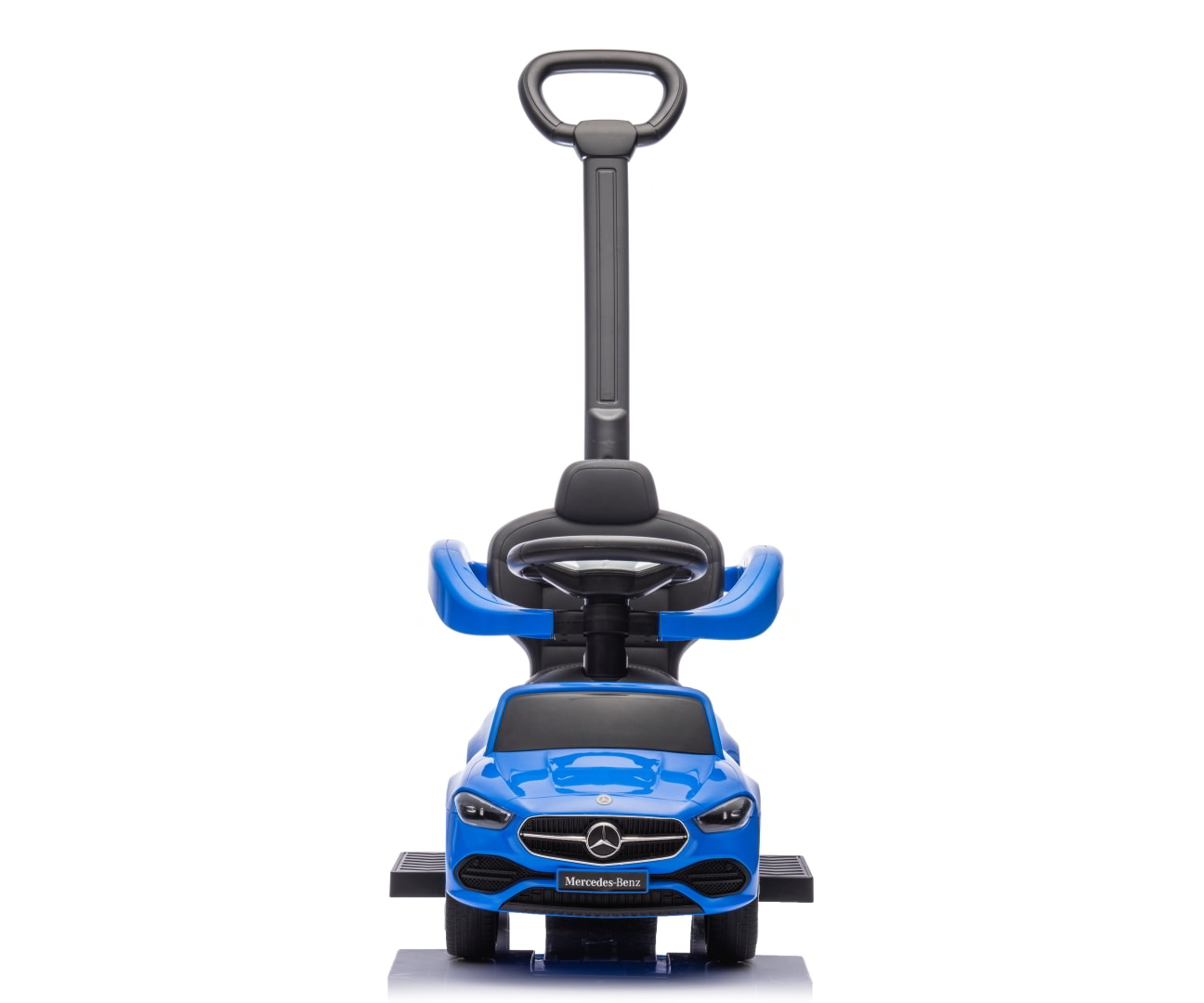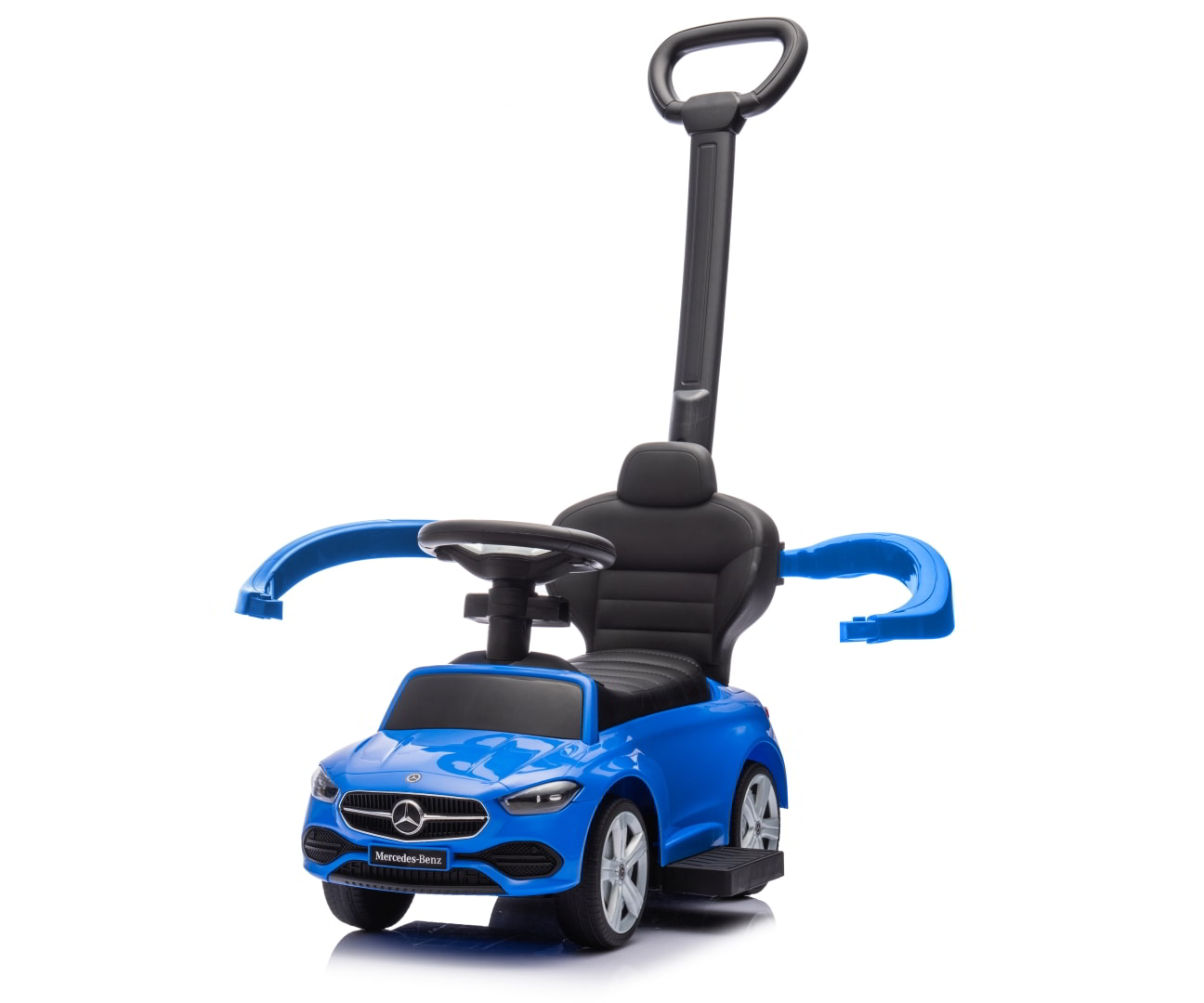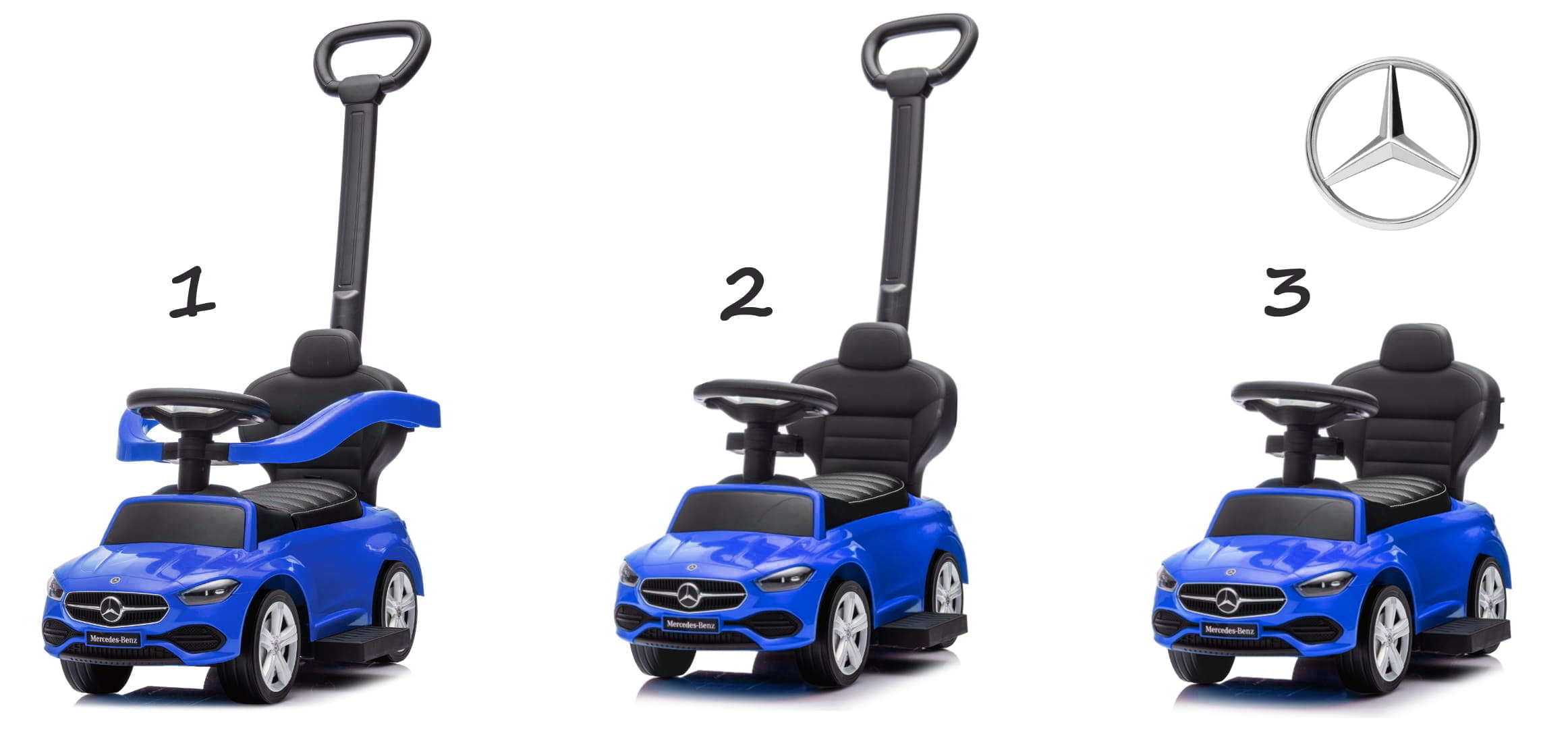 Ten wyjątkowy wielofunkcyjny jeździk Mercedes C-Class niebieski 3w1 z rączką z możliwością personalizacji imieniem na masce to prawdziwa rewolucja w świecie dziecięcych jeździków! Stworzony na oficjalnej licencji Mercedes-Benz, zachwyca niesamowitym podobieństwem do prawdziwego auta tej prestiżowej marki. Od charakterystycznego grilla po trójramienną kierownicę z oryginalnym logotypem – każdy element został dopracowany z niemiecką precyzją. Ten pojazd zmienia się wraz z rozwojem dziecka: