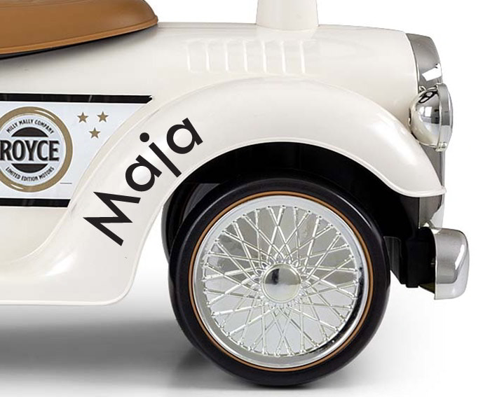 Pamiętasz swój pierwszy samochód? Dla Twojego malucha będzie to jeździk Royce z jego imieniem! Ten moment, gdy dziecko samo wprawia pojazd w ruch, to początek przygody z samodzielnością. Z dnia na dzień jazda staje się pewniejsza. Manewry bardziej precyzyjne. Twój mały kierowca odkryje schowek pod siedzeniem. Tam zmieści ulubione zabawki czy przekąskę na drogę. Elegancki wygląd zmieni zwykły spacer w prestiżową przejażdżkę. Na pewno przyciągnie uwagę sąsiadów.