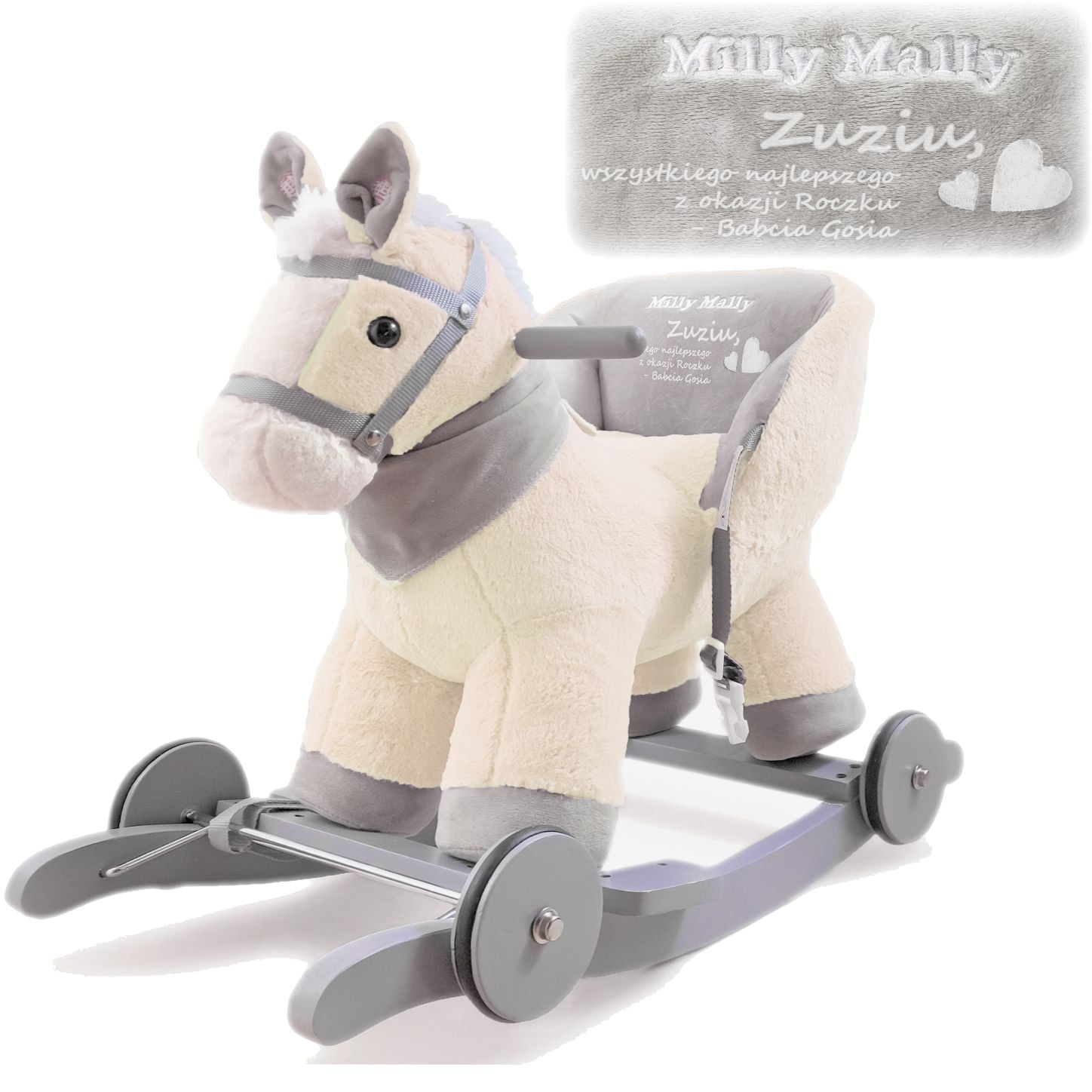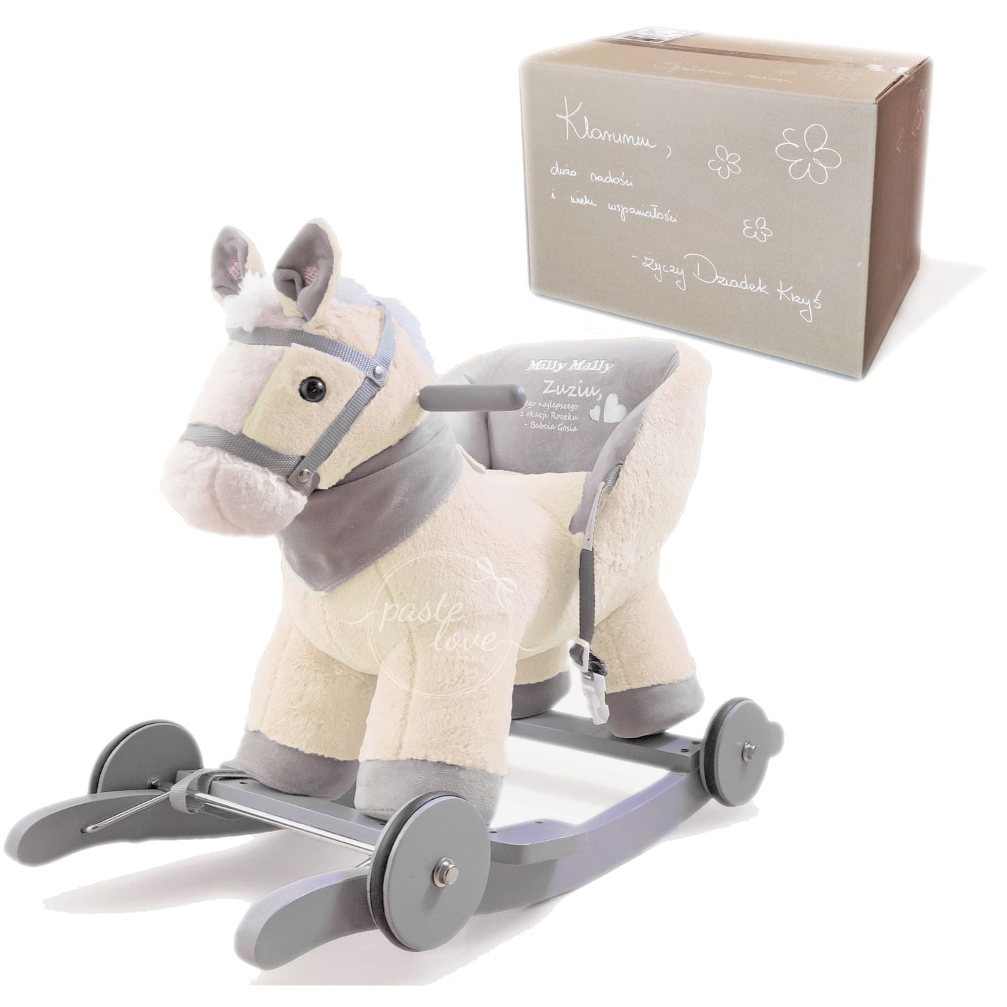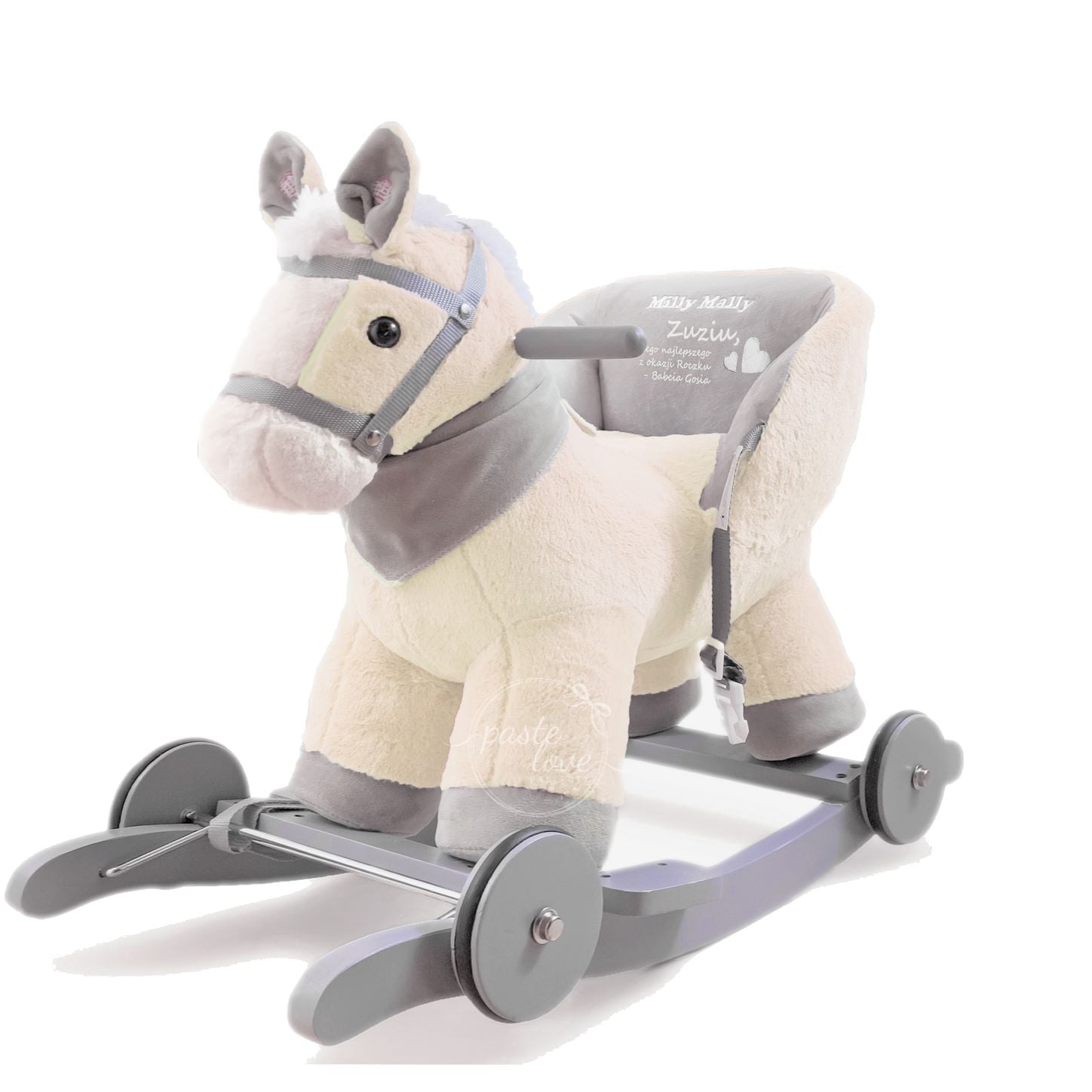 Dopełnieniem idealnego prezentu jest personalizacja. Dajemy Ci możliwość zamówienia napisu. Na oparciu możesz umieścić imię, ważną datę lub życzenia. Dzięki temu konik POLLY będzie wyrażał Twoje zaangażowanie.