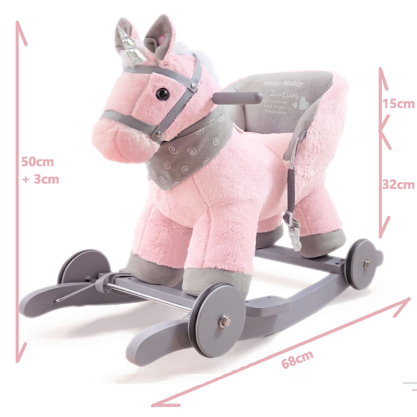 Konik na biegunach z oparciem – różowy Jednorożec