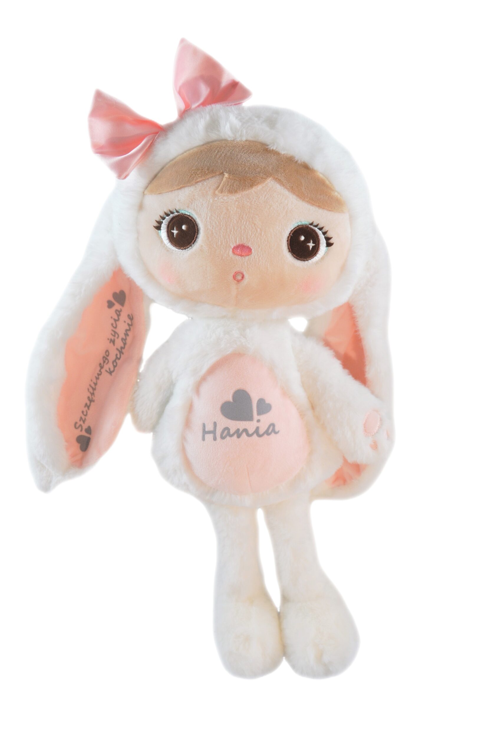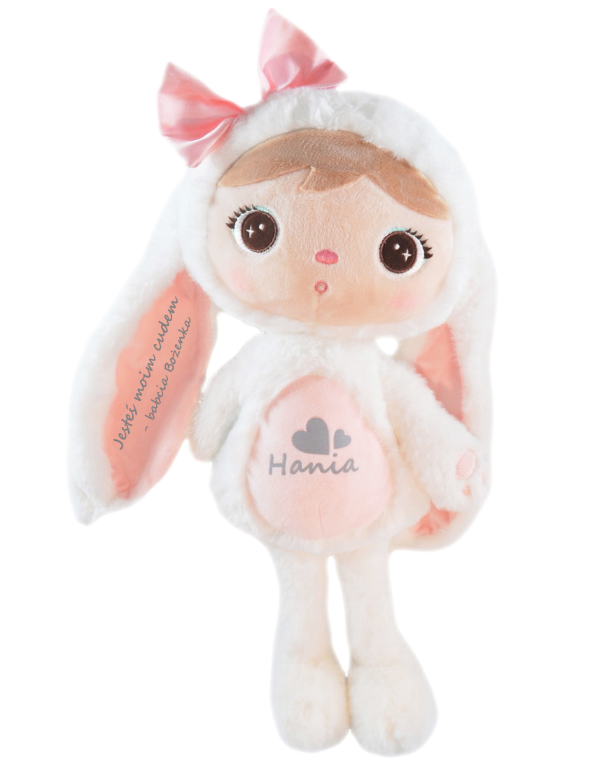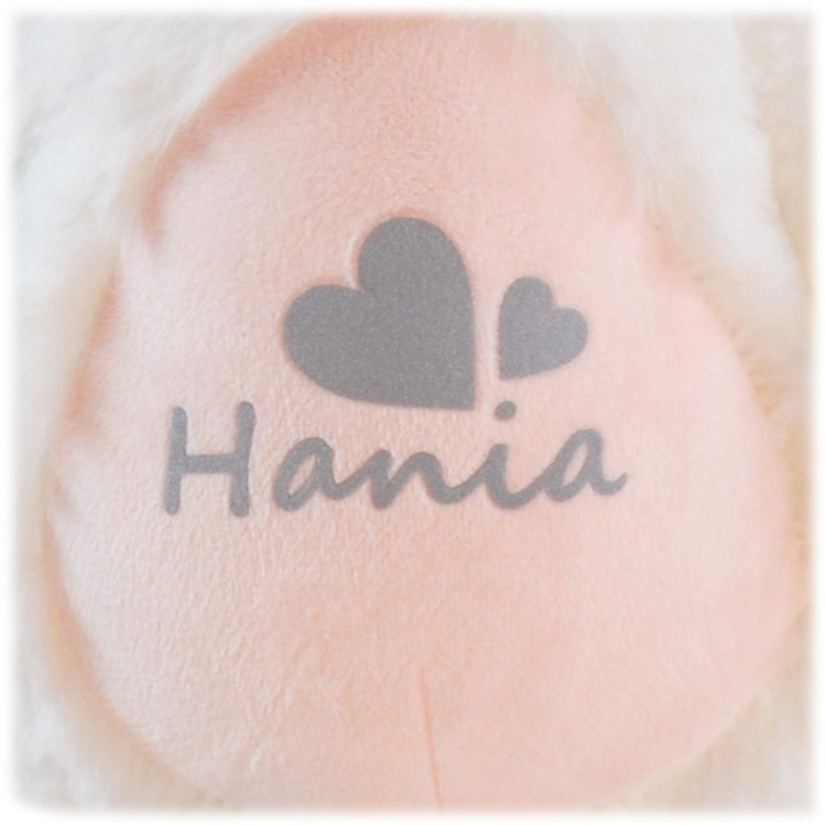 ✔️ Króliczka można prać w temperaturze max. 30 stopni na niskich obrotach. Personalizacja wykonana jest w nowoczesnej technologii 3D i przypomina zamsz/welur.