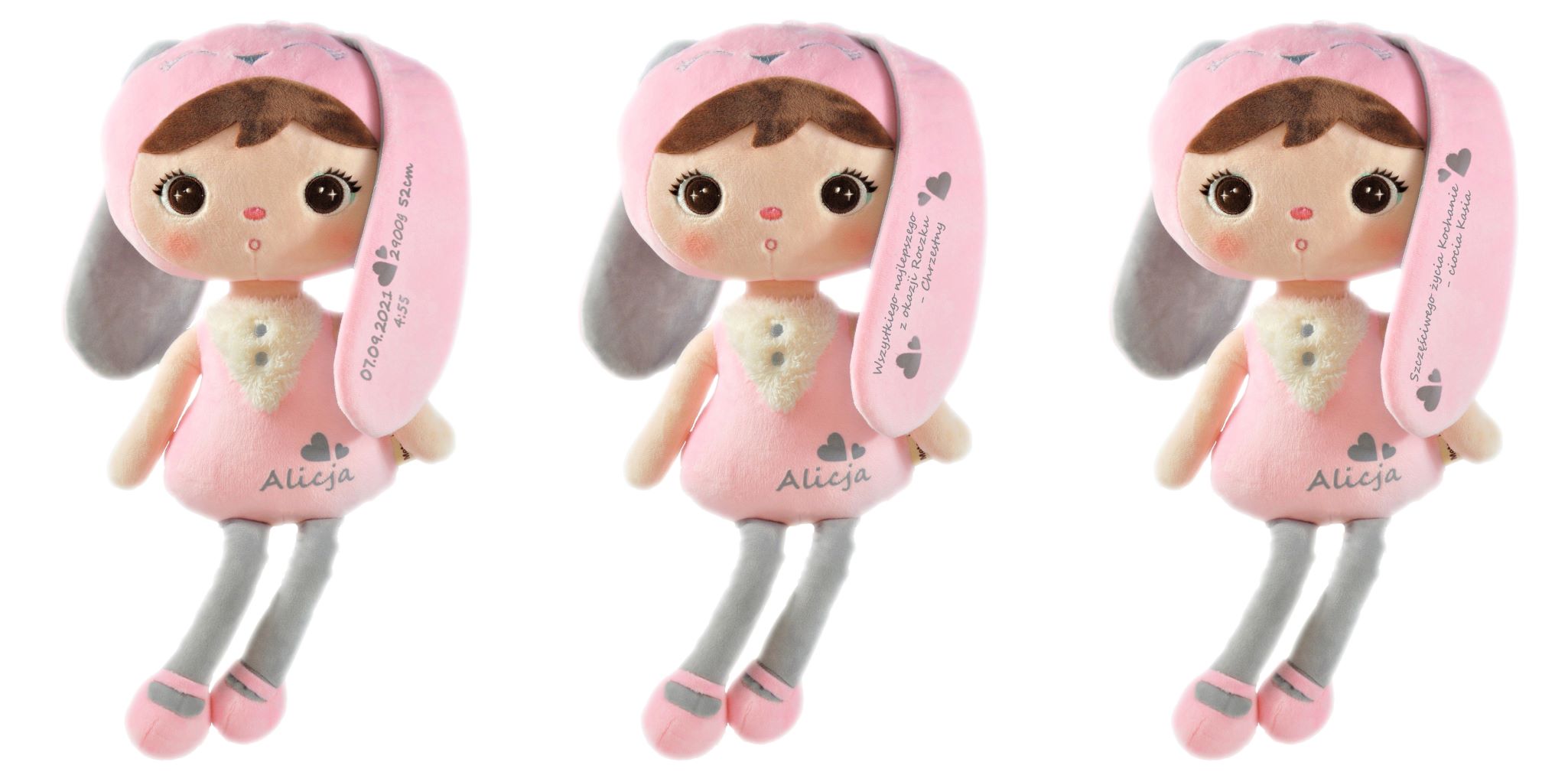 - Długość całkowita lalki – ok. 50 cm + długość uszu