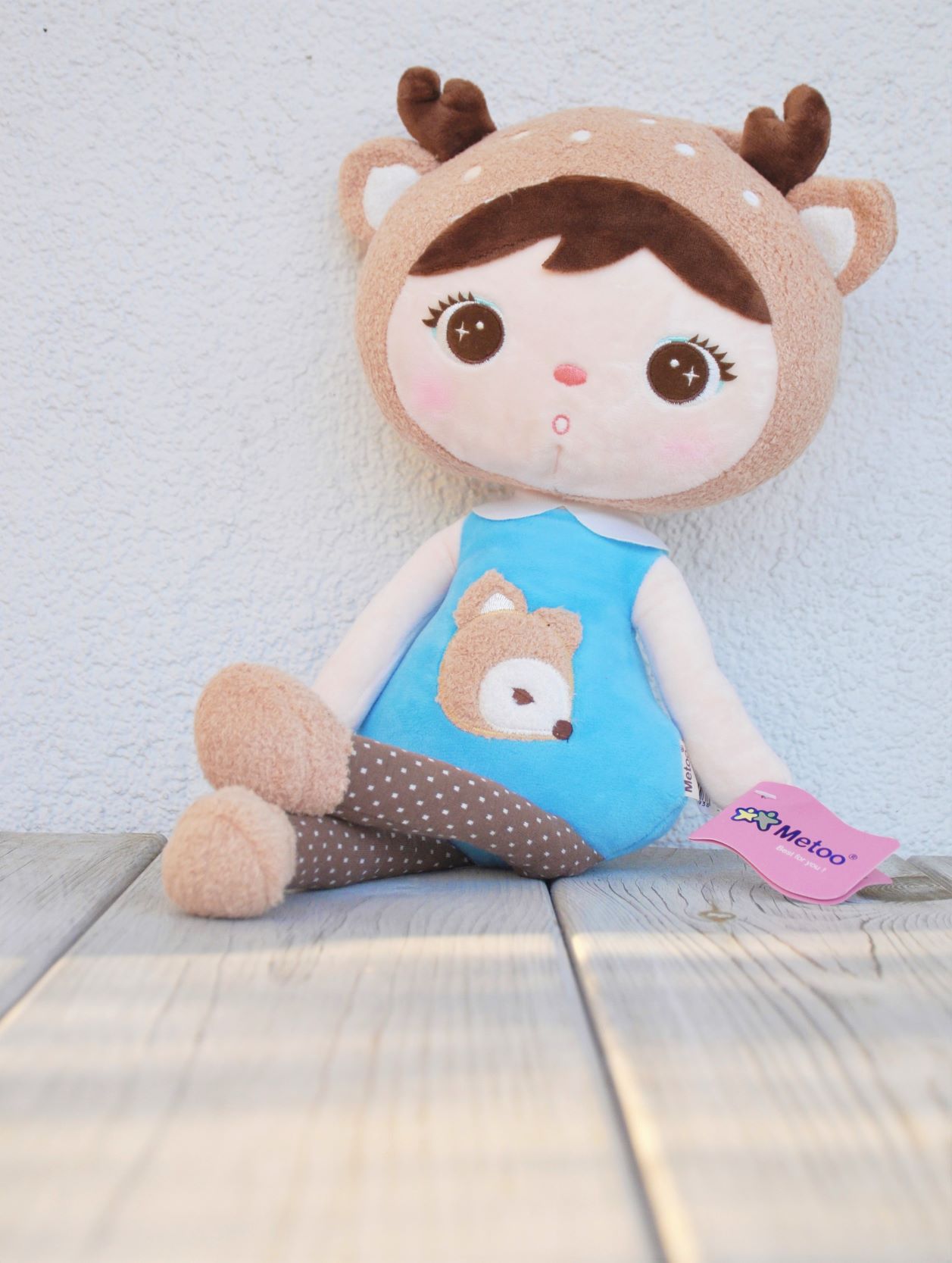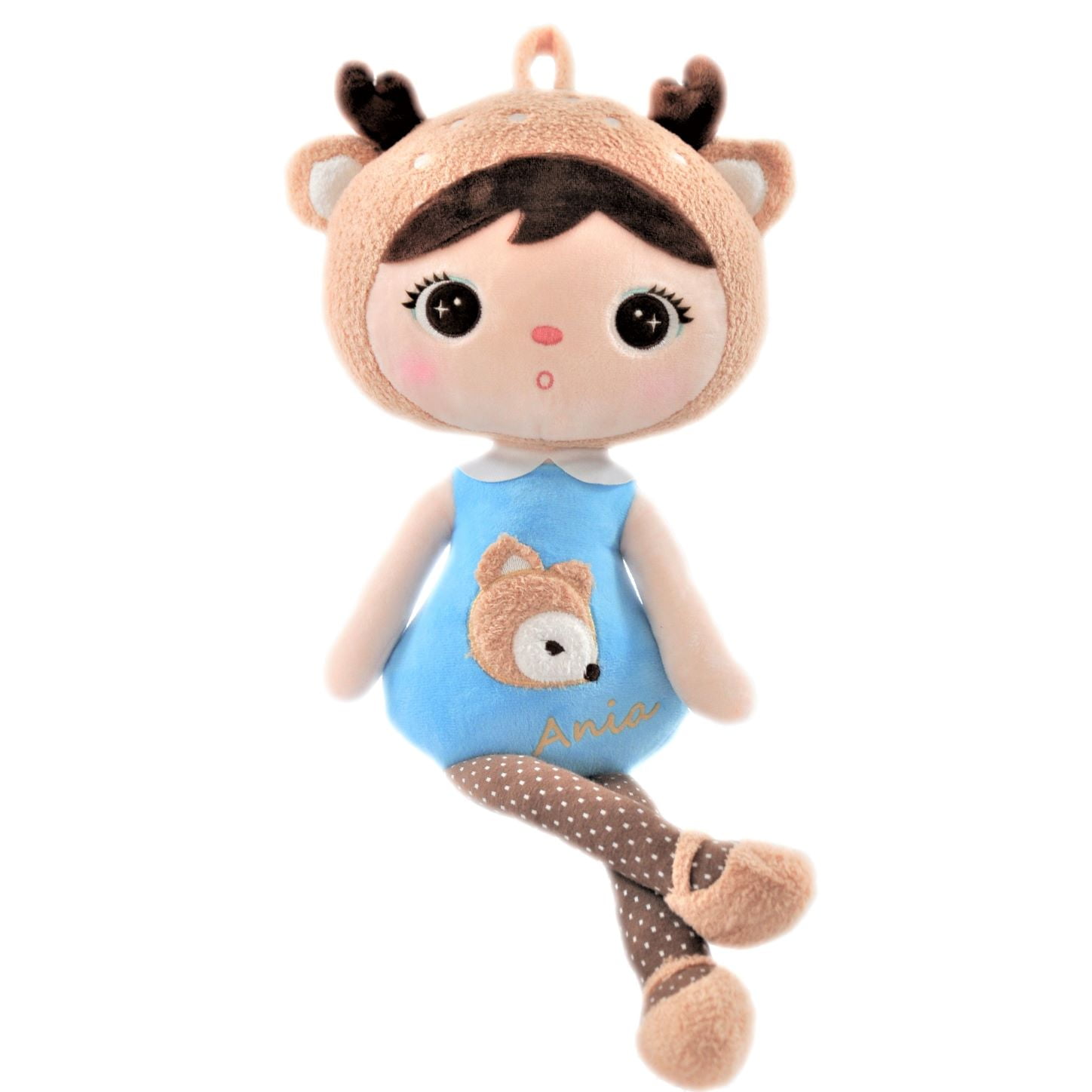 Lalka Metoo to idealna towarzyszka dziecięcych dni. Słodka Sarenka w pięknej niebieskiej sukience, uroczej czapeczce i rajstopach w grochy to świetny wybór.
