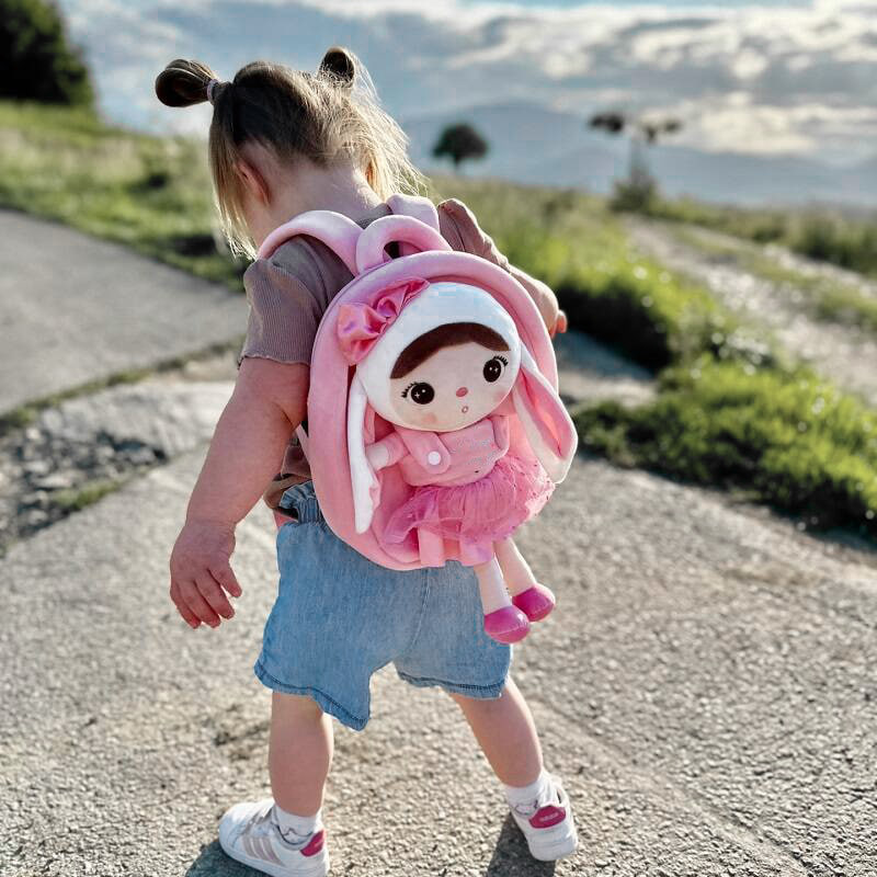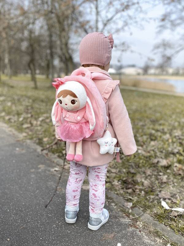 ✔️ Plecak jest odpowiedni dla dziewczynek od wieku przedszkolnego, ale lalka-królik jest bezpieczna nawet dla niemowląt.