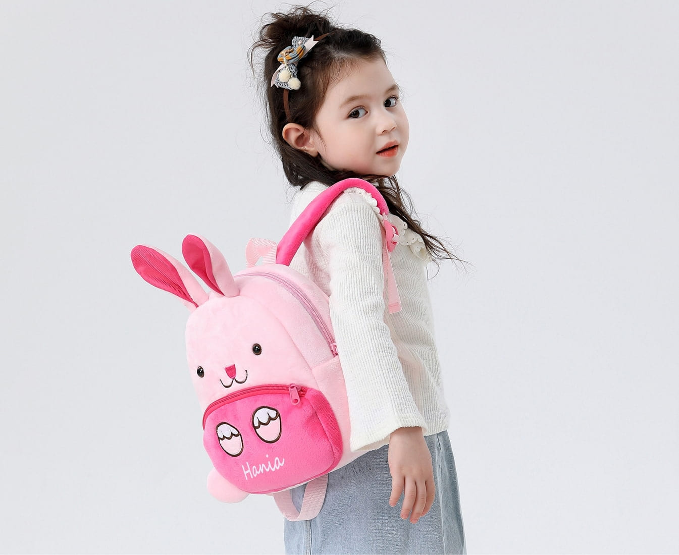 - 1. Wybierz pluszowego różowego króliczka-plecak idealny dla dziewczynki w wieku 2-7 lat.