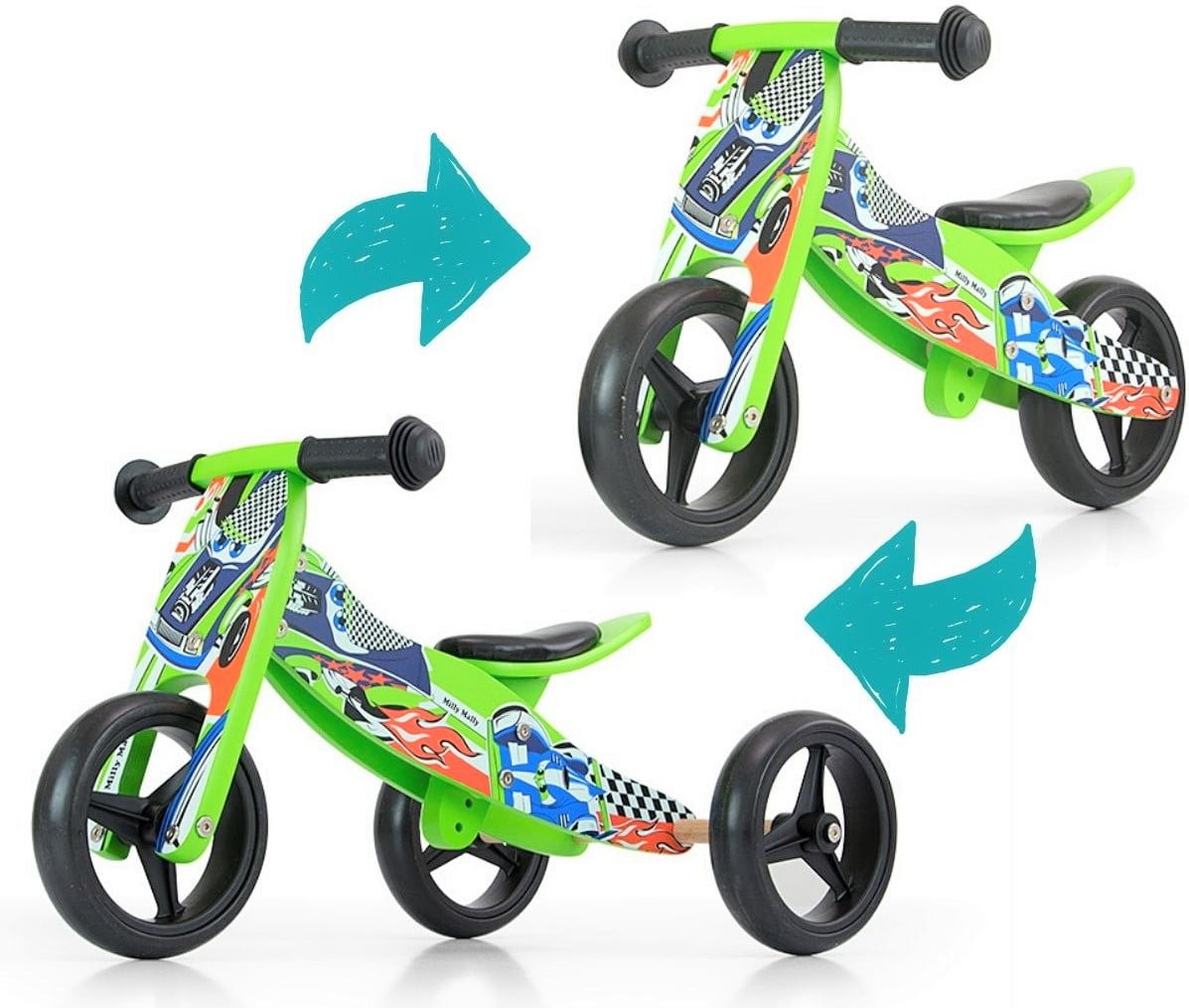 Rowerek drewniany JAKE Green Cars Milly Mally 2w1