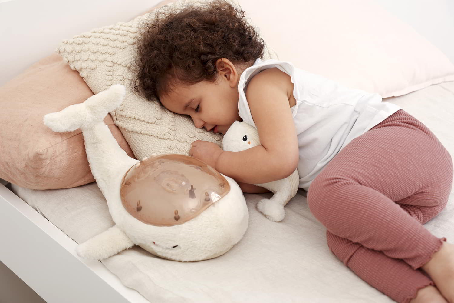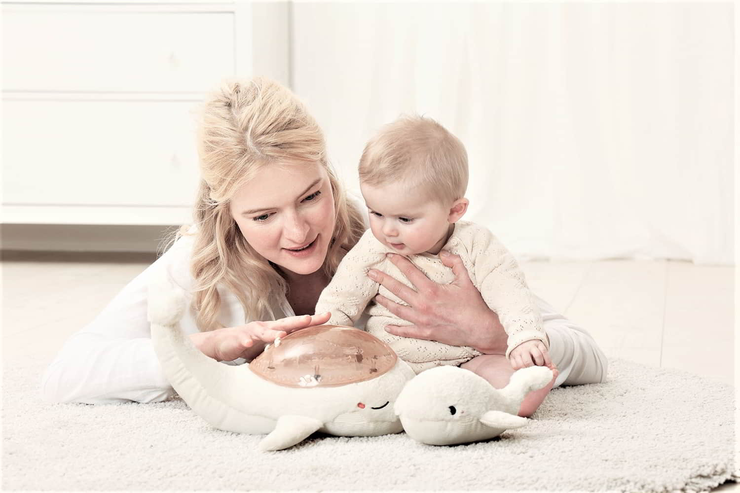 Szumiący i Emitujący Światło Wieloryb Cloud B to nie tylko lampka nocna dla dzieci z projektorem i szumiący miś. W ciągu dnia zabawę zapewni para wielorybów (duży i mały). Supermoce dużego już znamy, a mały ma wbudowaną grzechotkę. To połączenie zabawy i kojącego kompana sprawia, że ta maskotka jest nieodzownym towarzyszem Twojego dziecka.
