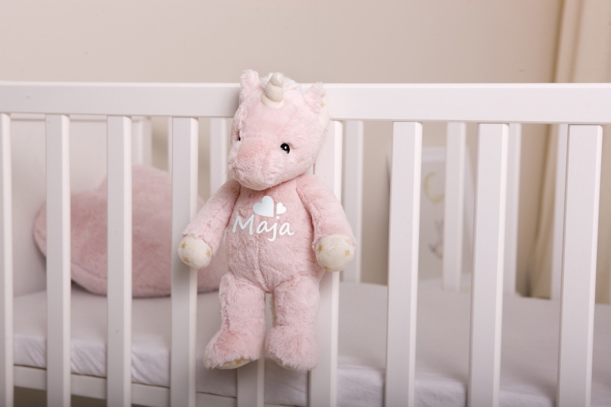 Szukasz wyjątkowego prezentu dla noworodka? Spersonalizowany Jednorożec z 8 opcjami dźwiękowymi to idealny wybór! Wpisanie imienia maluszka na przytulance sprawi, że stanie się ona pierwszym osobistym przyjacielem dziecka, towarzyszącym mu podczas snu i zabawy przez wiele lat.