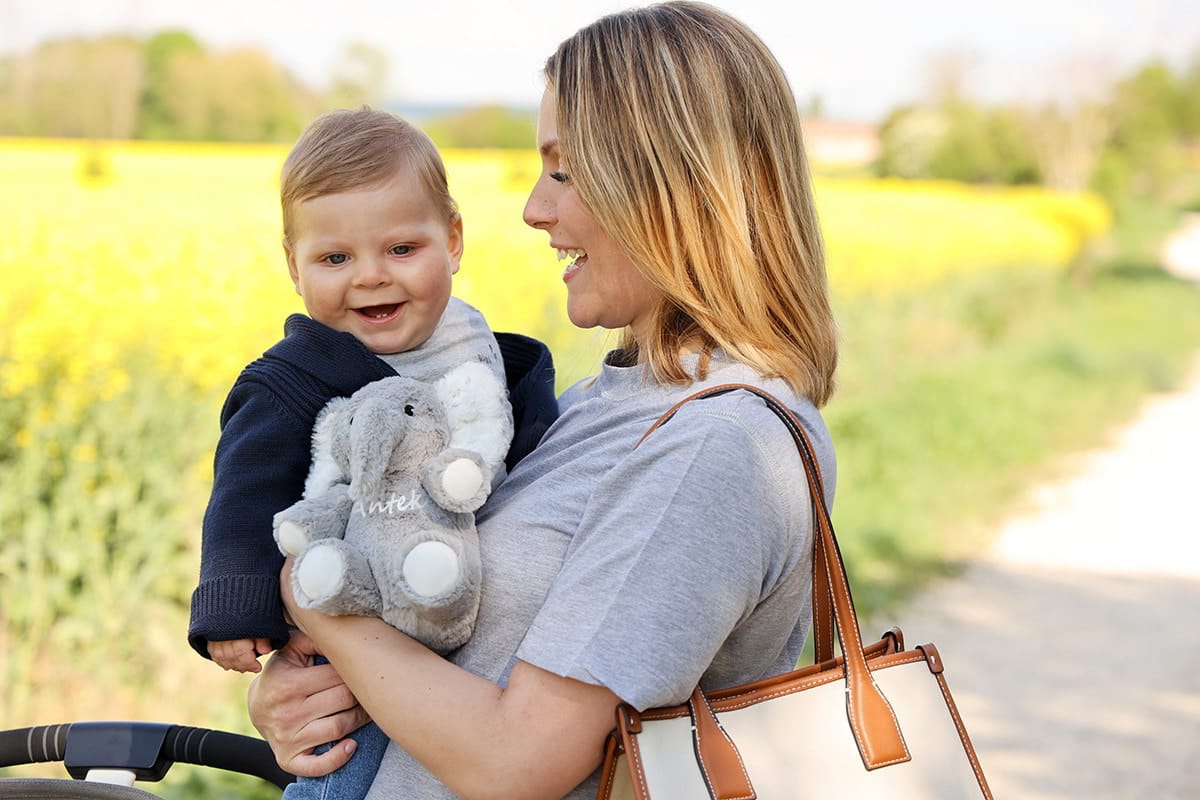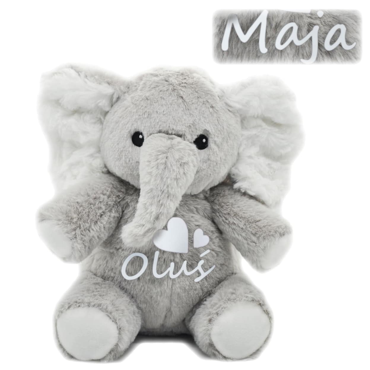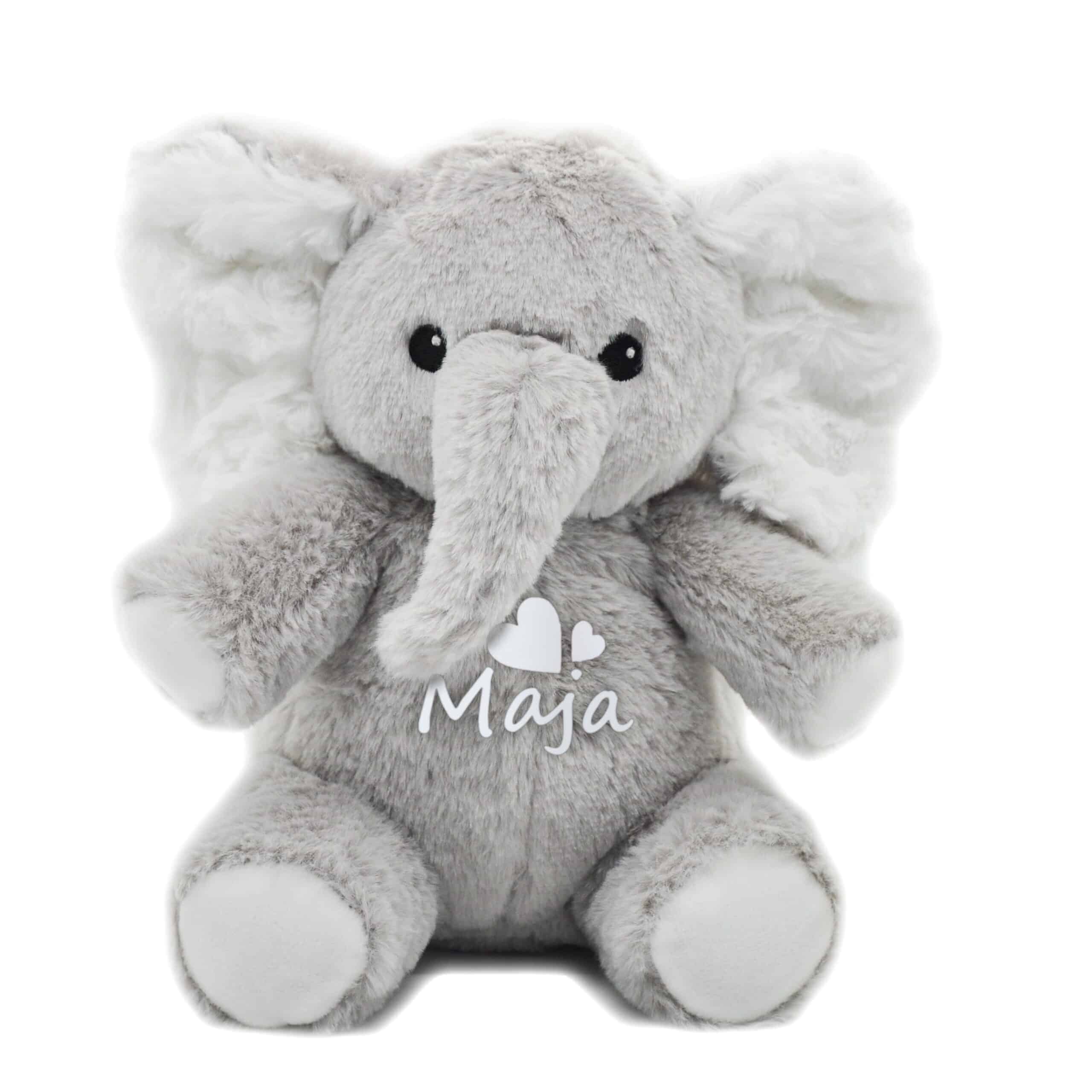 - ✔️ Personalizacja: imię dziecka na brzuszku słonika